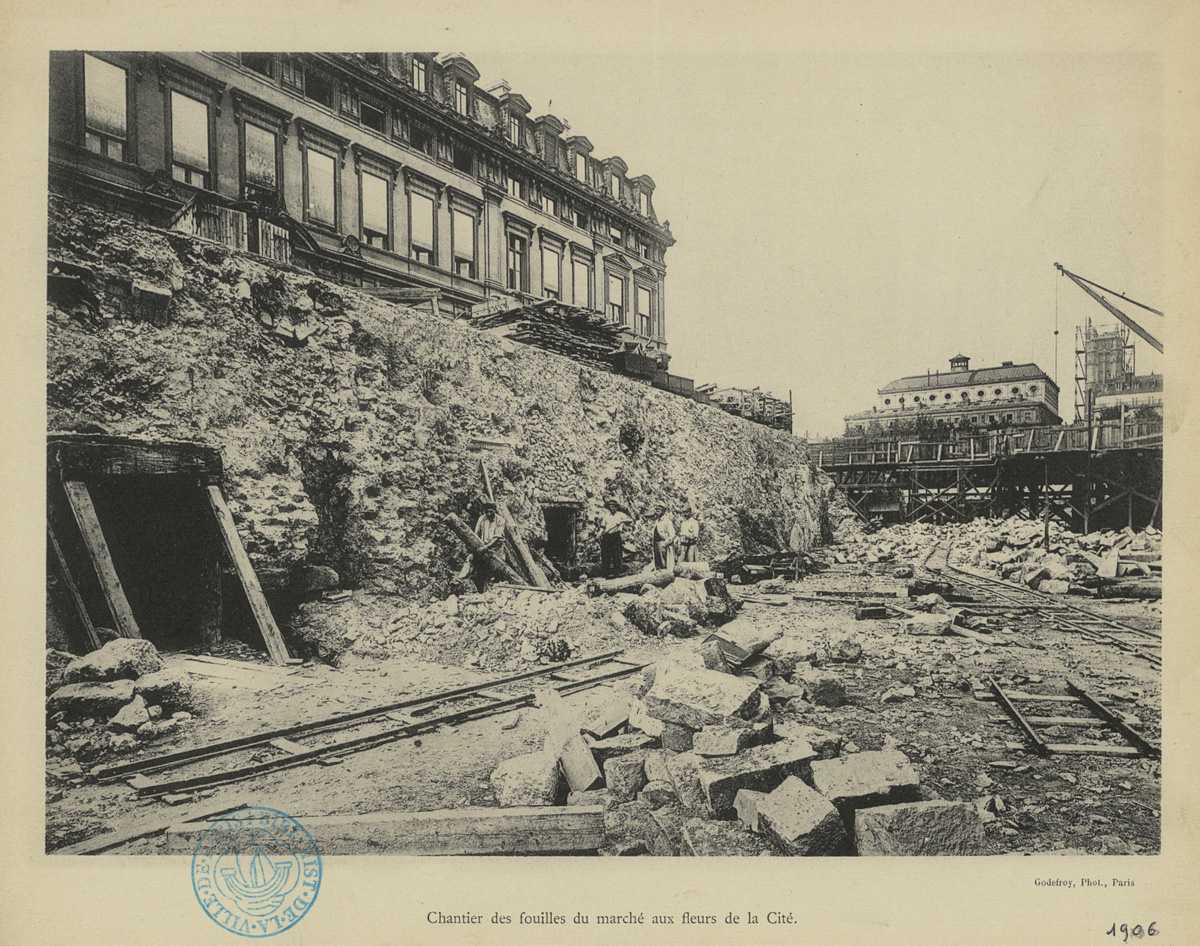 Chantier des fouilles du marché aux fleurs de la Cité.