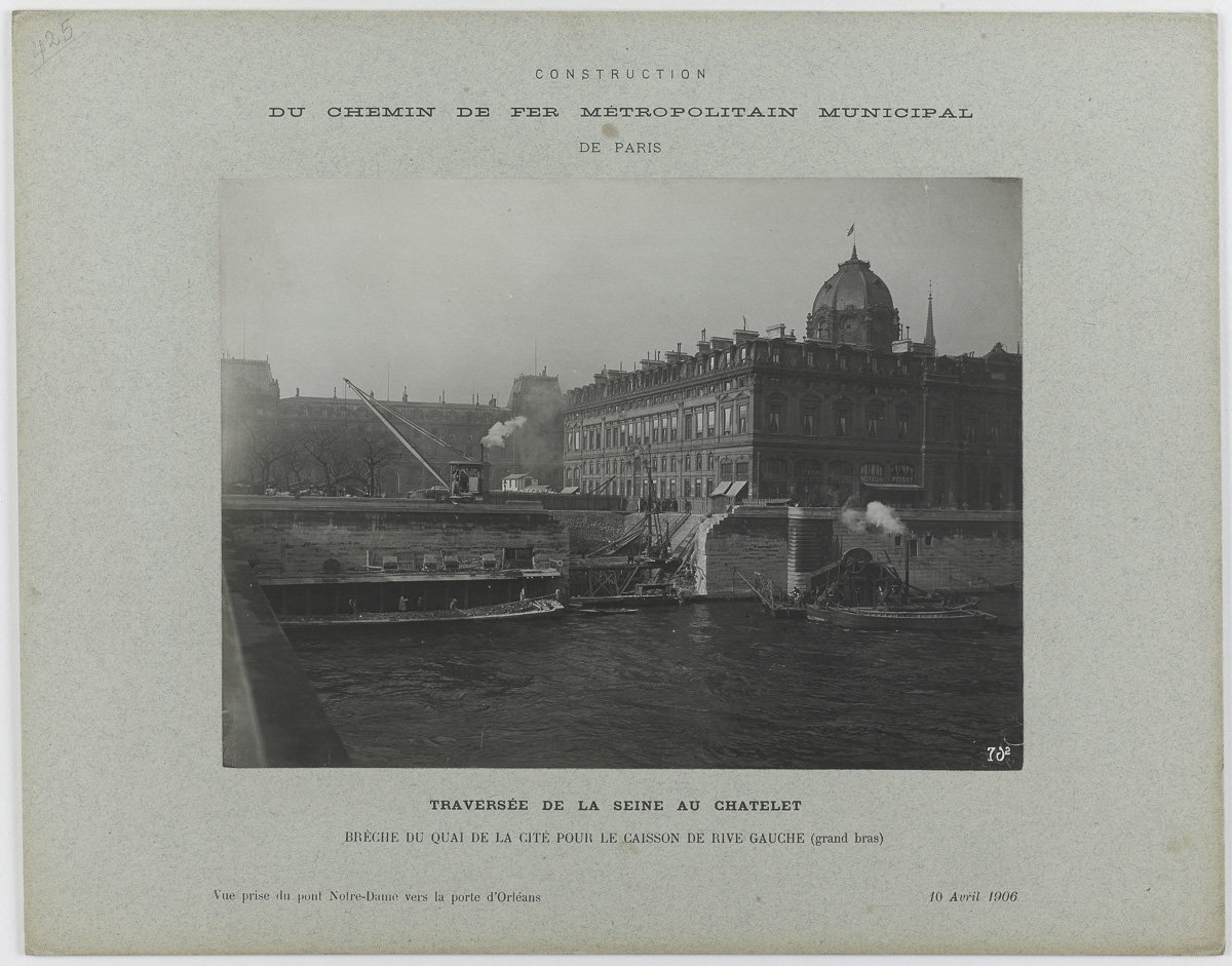 Brèche du quai de la Cité pour la construction du métro le 10 avril 1906.