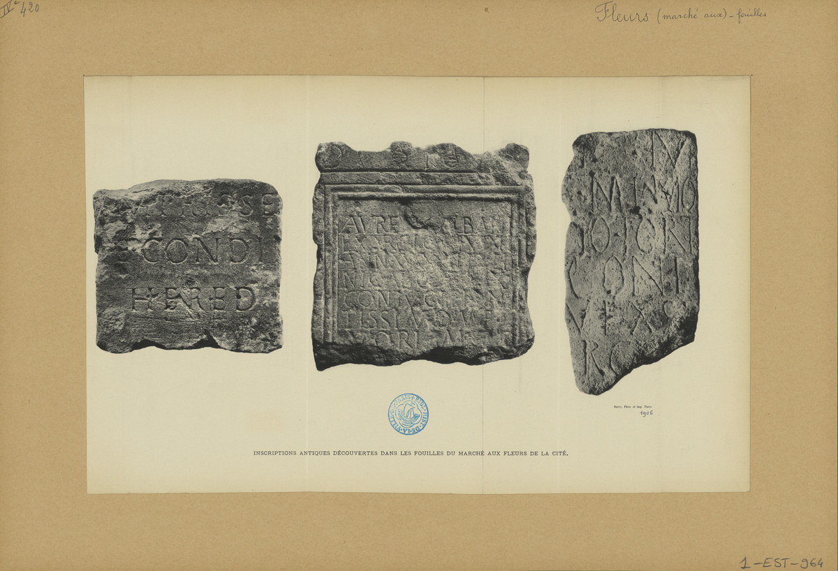 Inscriptions antiques découvertes dans les fouilles du marché aux fleurs de la cité.