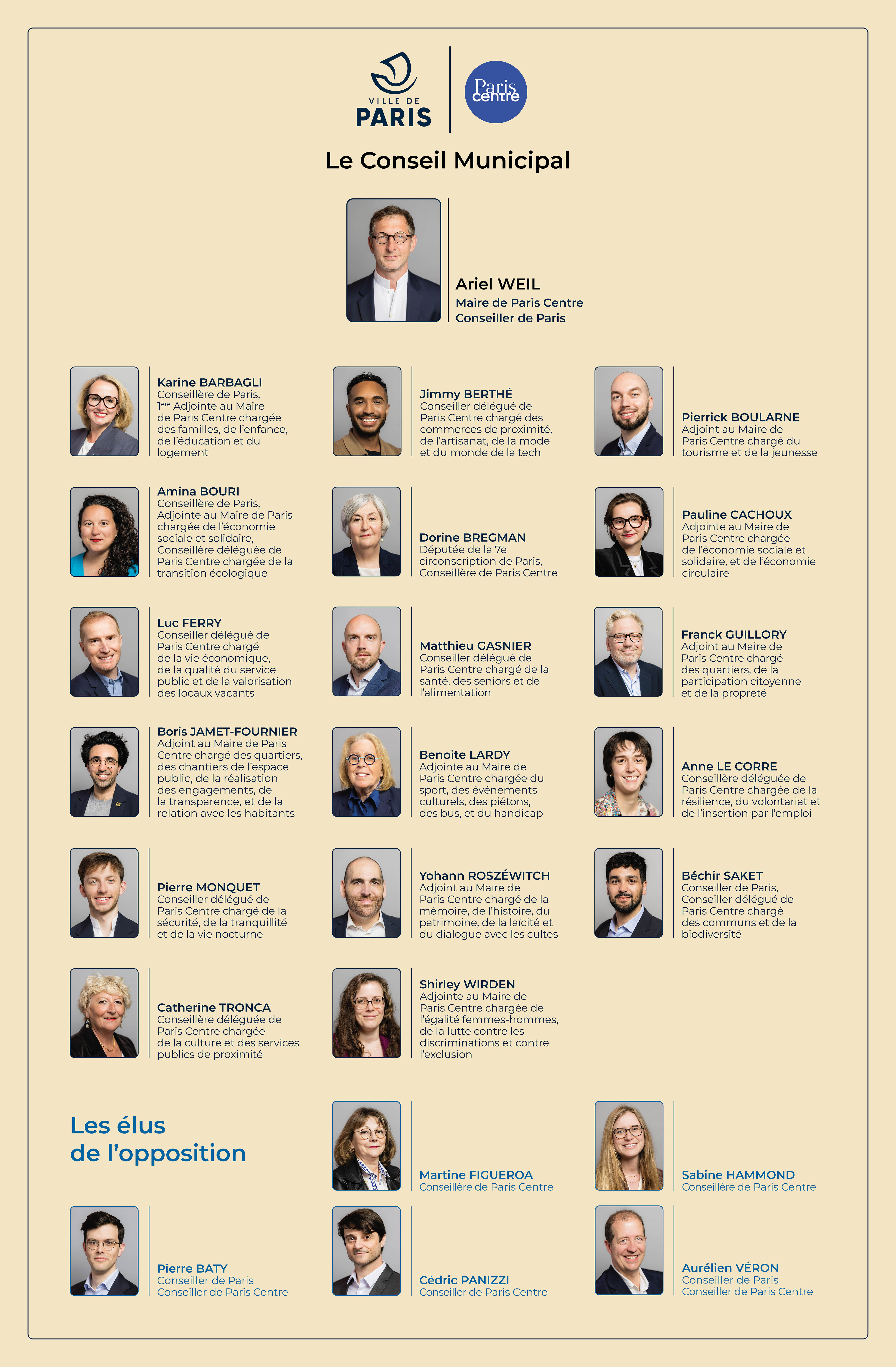 L'équipe municipale Actualité Mise à jour le 17/04/2026 Découvrez les 23 élus de Paris Centre Crédit photo : Mairie de Paris