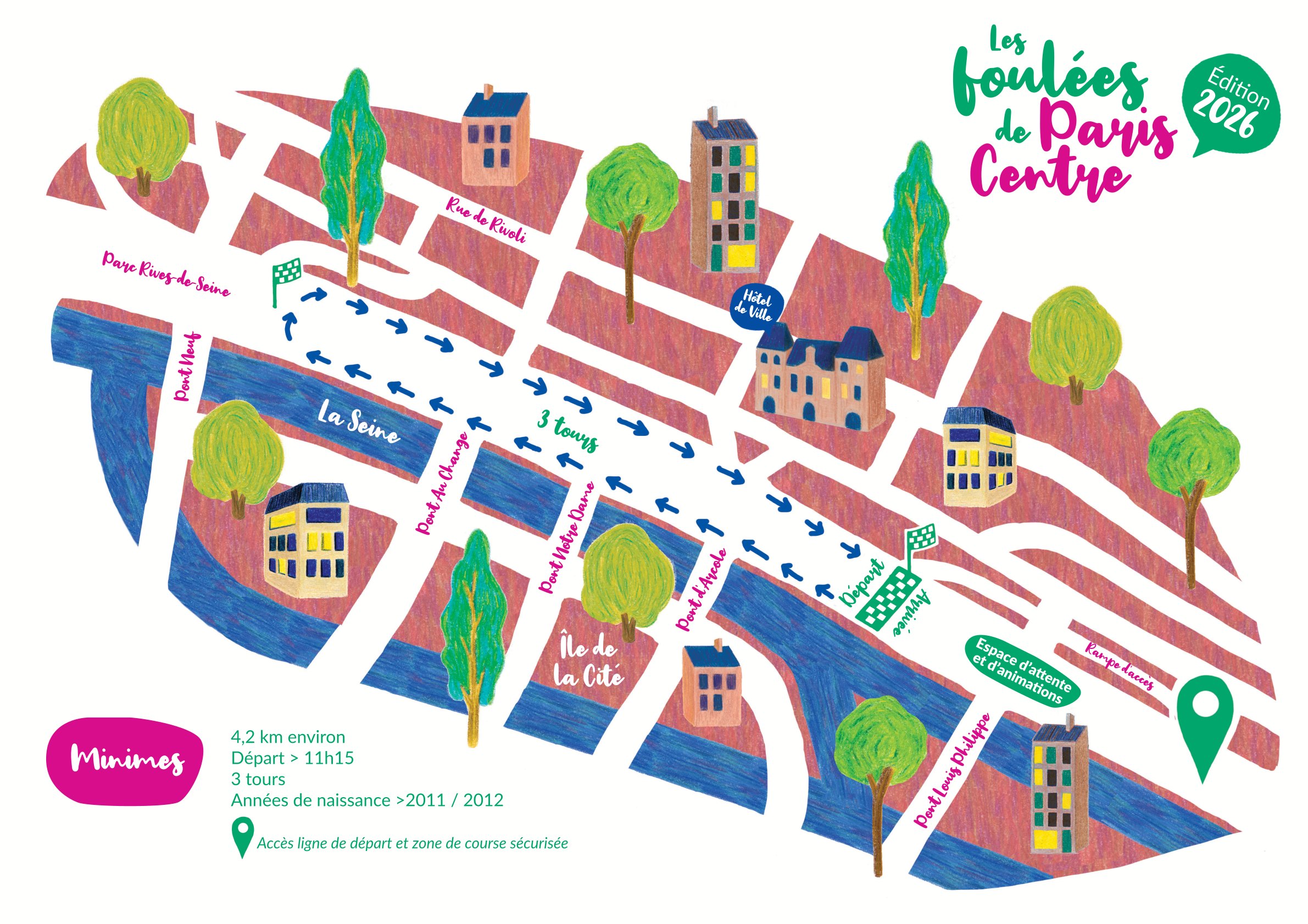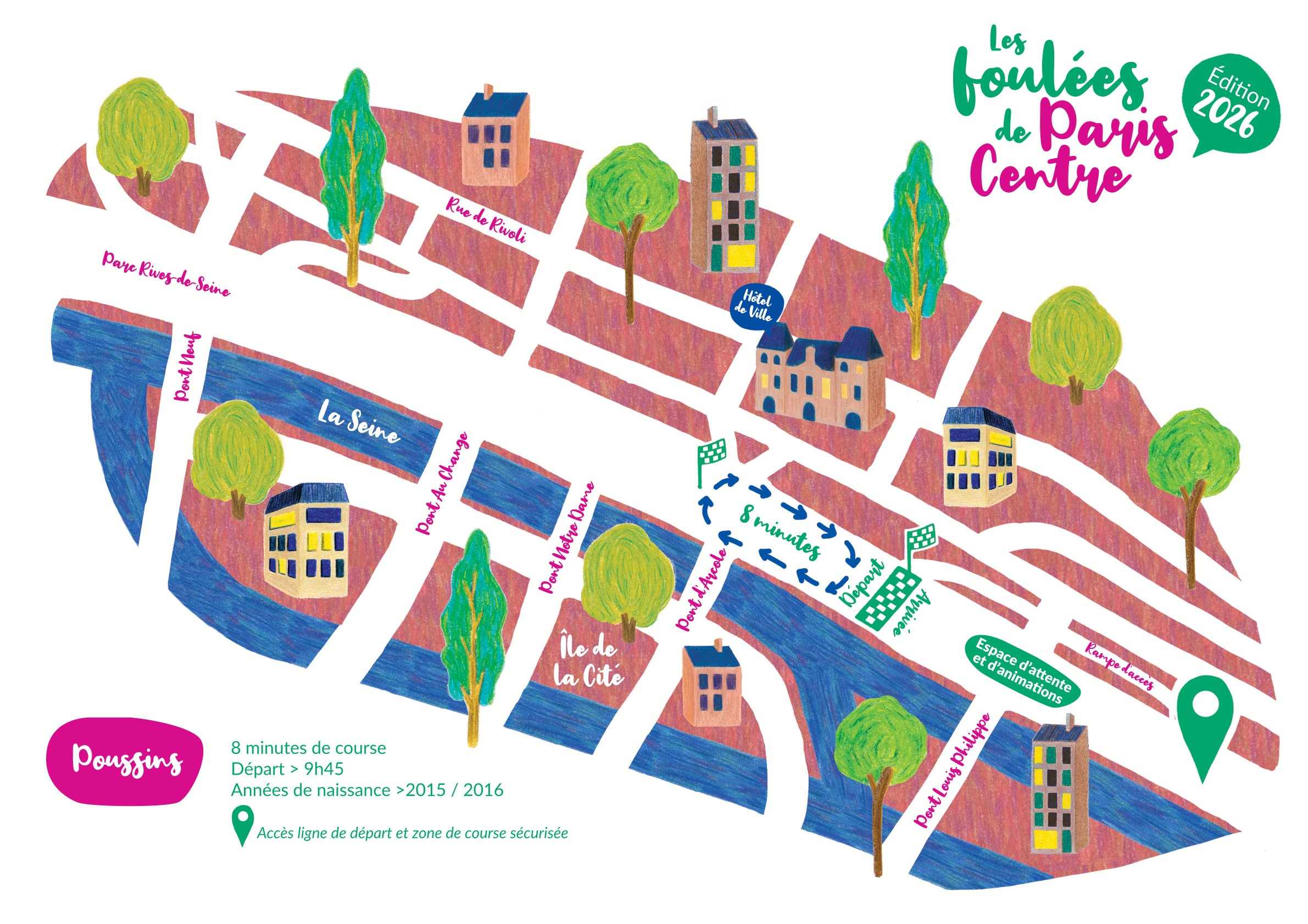 Présentez-vous 15 minutes avant le départ pour le rassemblement des coureurs.