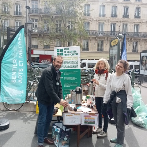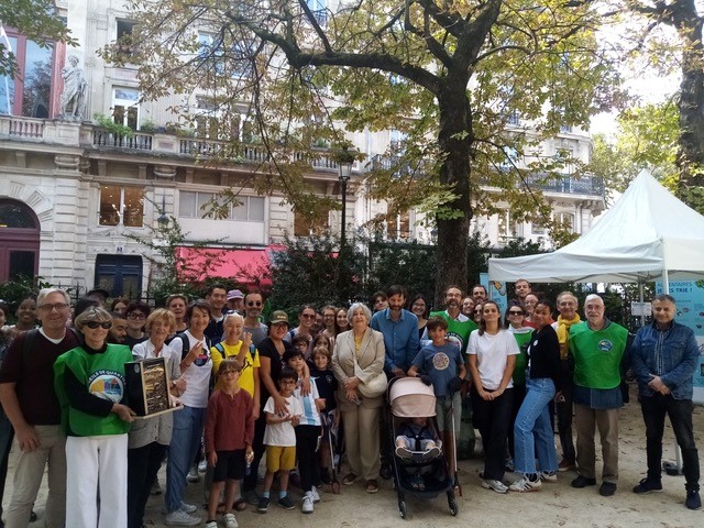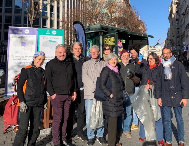 Une cinquantaine de personnes ont participé au World Clean Up Day de septembre 2024 en écoutant des commentaires sur quelques immeubles remarquables par une médiatrice de la Gaité lyrique et les présidents des Conseils de quartier