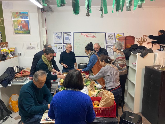 Atelier de préparation d'une soupe lors du Noël solidaire en décembre 2023